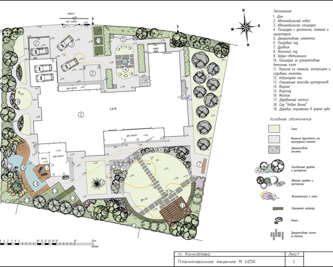 - предварительная оценка существующего растительного покрова, особенно, если на участке присутствуют крупные деревья и кустарники, поскольку именно на этом этапе принимается решение о дальнейших мероприятиях: лечении, омоложении, удалении, пересадке